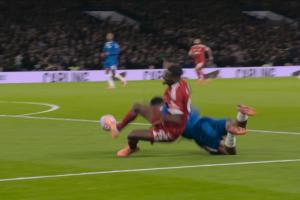 利物浦队因里斯·詹姆斯对伊萨克的犯规动作要求判罚点球,但裁判吹罚的是红军前锋犯规,而非点球。