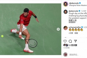 德约科维奇社媒庆祝胜利,他写道:“艰难的一天,体能上极具挑战。幸运的是,我拥有世界上最棒的支持,我爱上海。”