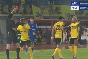 被主裁出示黄牌后仍不依不饶,最后被直接红牌罚下,西海岸剩9人!