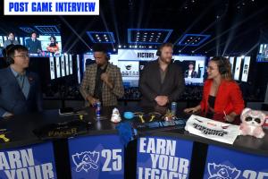 Tabe:其实我有一点点的伤心,因为我觉得我们第一把我的BP没有做得非常好,在BP的时候有一些小失误。但我还是很开心,因为我感觉到在输掉第一局之后,我们队有一点点紧张,但是我告诉他们如果我修正一下BP的话,我们会赢的,我希望他们能保持住耐心。然后也很幸运我们今天赢下来了。