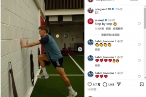 厄德高在10月4日对阵西汉姆的比赛中膝盖内侧副韧带受伤,他在社交媒体上晒出康复训练的照片,这位阿森纳中场正在努力恢复,希望尽快复出帮助球队。