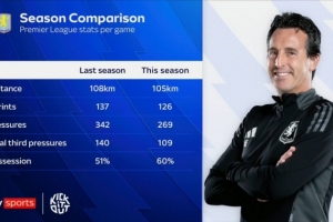 体育资讯9月28日讯 本赛季英超,维拉0胜3平2负积3分,位居联赛第18位。日前,《天空体育》统计了维拉本赛季与上赛季的联赛场均数据。