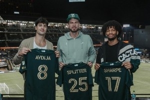 获赠球衣!斯普利特&阿夫迪亚&夏普观看同城美职联伐木工队季后赛