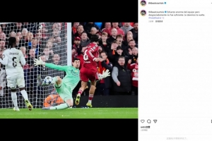 库尔图瓦社媒晒扑索博必进球照:我们付出了努力,遗憾的是还不够