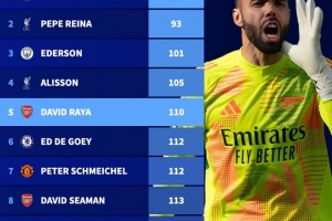 英超门将最快50场零封排行榜:拉亚跻身前五,切赫和雷纳排名一二