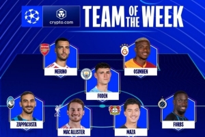 欧足联官方本轮欧冠最佳阵:福登、梅里诺领衔,诺伊尔在列