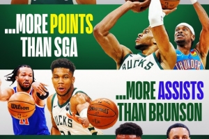 全能的字母哥!得分比SGA多 助攻比布伦森多 三分命中率比库里高
