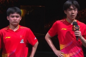王楚钦:首先还是和林诗栋今天这场发挥还是非常不错,对于明天的决赛也是队友之间的比赛我认为谁输谁赢都是值得开心的一件事情,然后在这也希望跟大家说一下我认为我们大家都是中国队的运动员,无论我们在场上跟谁搭档,或者对面站的也是中国队的队友,我希望大家可以有自己支持喜欢的运动员,不要上升攻击到其他运动员,尤其是在现场。