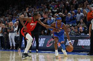 今日新赛季的NBA重燃战火,在揭幕战的两场比赛中,雷霆主场双加时125-124险胜火箭,勇士客场119-109力克湖人。