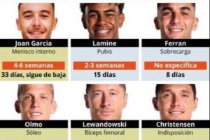 伤了一整套主力巴萨伤员:佩德里、莱万、拉菲、奥尔莫......