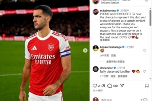 梅里诺:戴上阿森纳队长袖标令我自豪和荣幸,枪手加油!❤️