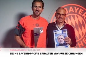 拜仁官方:凯恩等6将领取上赛季德国球员工会评选的最佳阵容奖杯