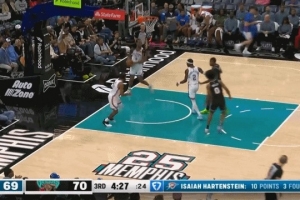 切特上篮被莫兰特劈头盖脸搂下来 裁判回看后吹罚普通犯规